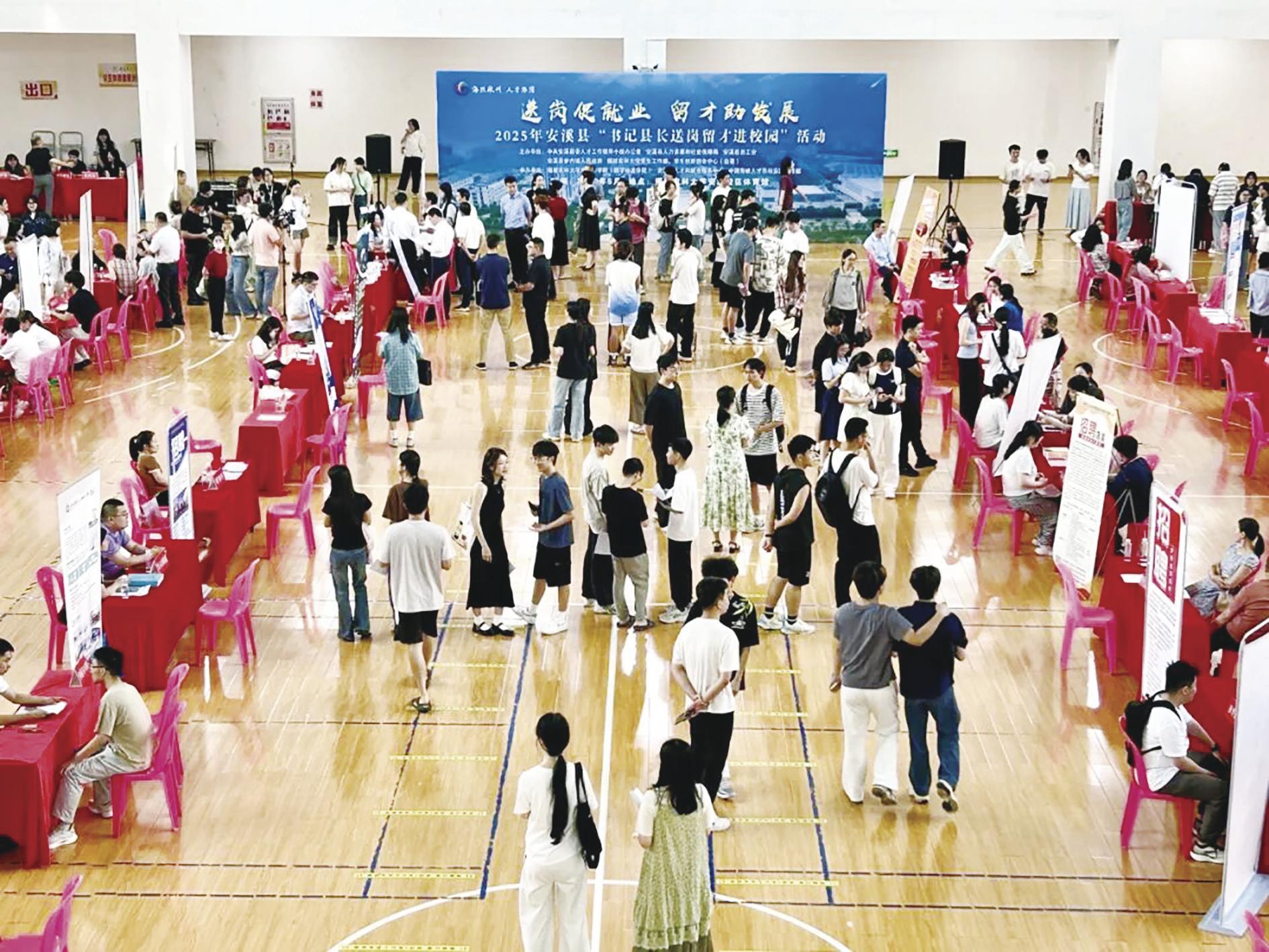 日前,2025年泉州市“百日千万招聘专项行动”暨人才夜市招聘会(安溪专场)在万达广场火热开展。展位前人头攒动,求职者与企业负责招聘人员面对面交流,空气中满是“双向奔赴”的期待。