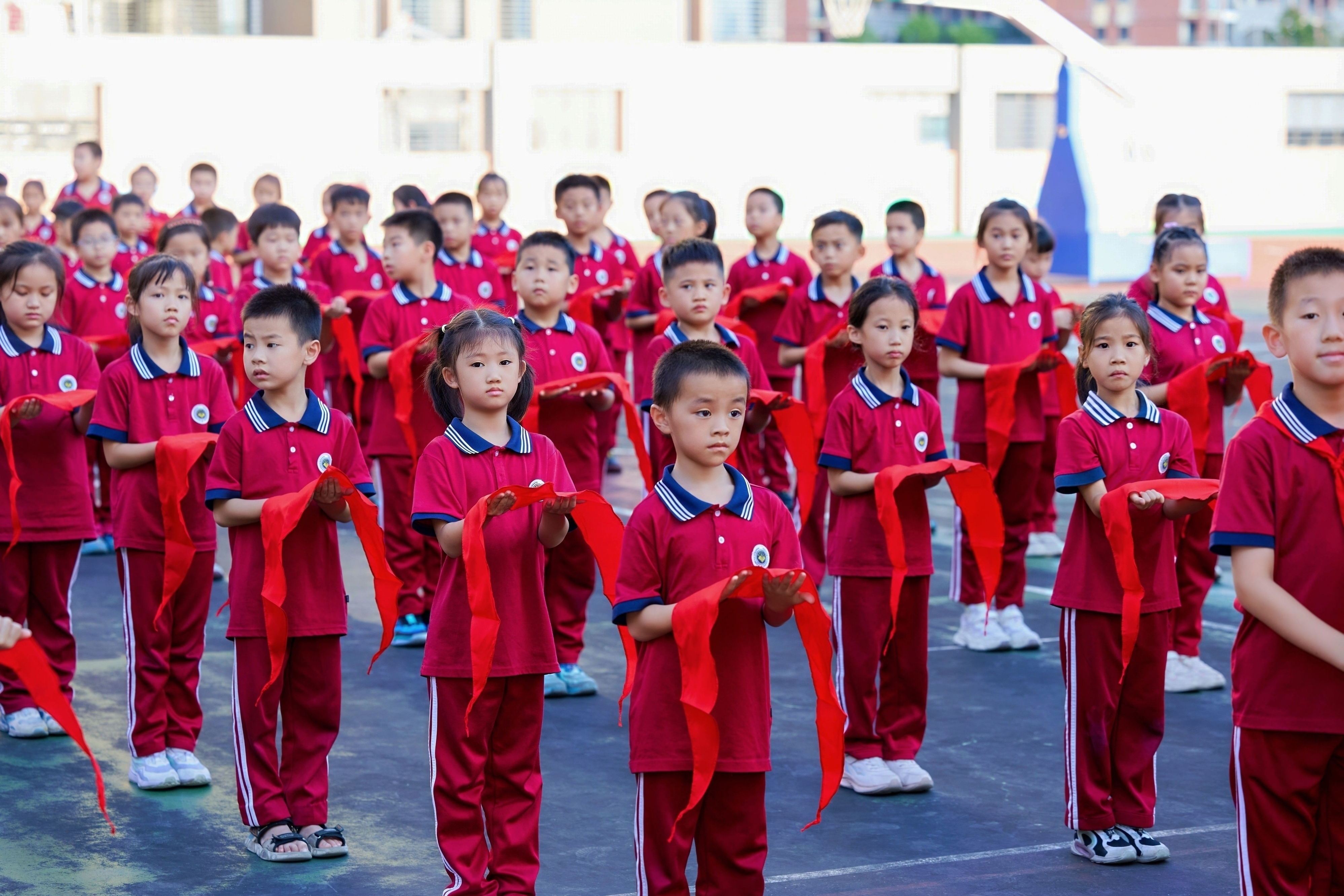 仪式在庄严的出旗曲中开始,旗手高擎队旗入场,全体队员齐唱队歌。新队员名单公布后,优秀少先队员代表为新队员佩戴上鲜艳的红领巾。在队旗下,新队员们庄严宣誓,铿锵誓言展现了争做新时代好少年的决心。