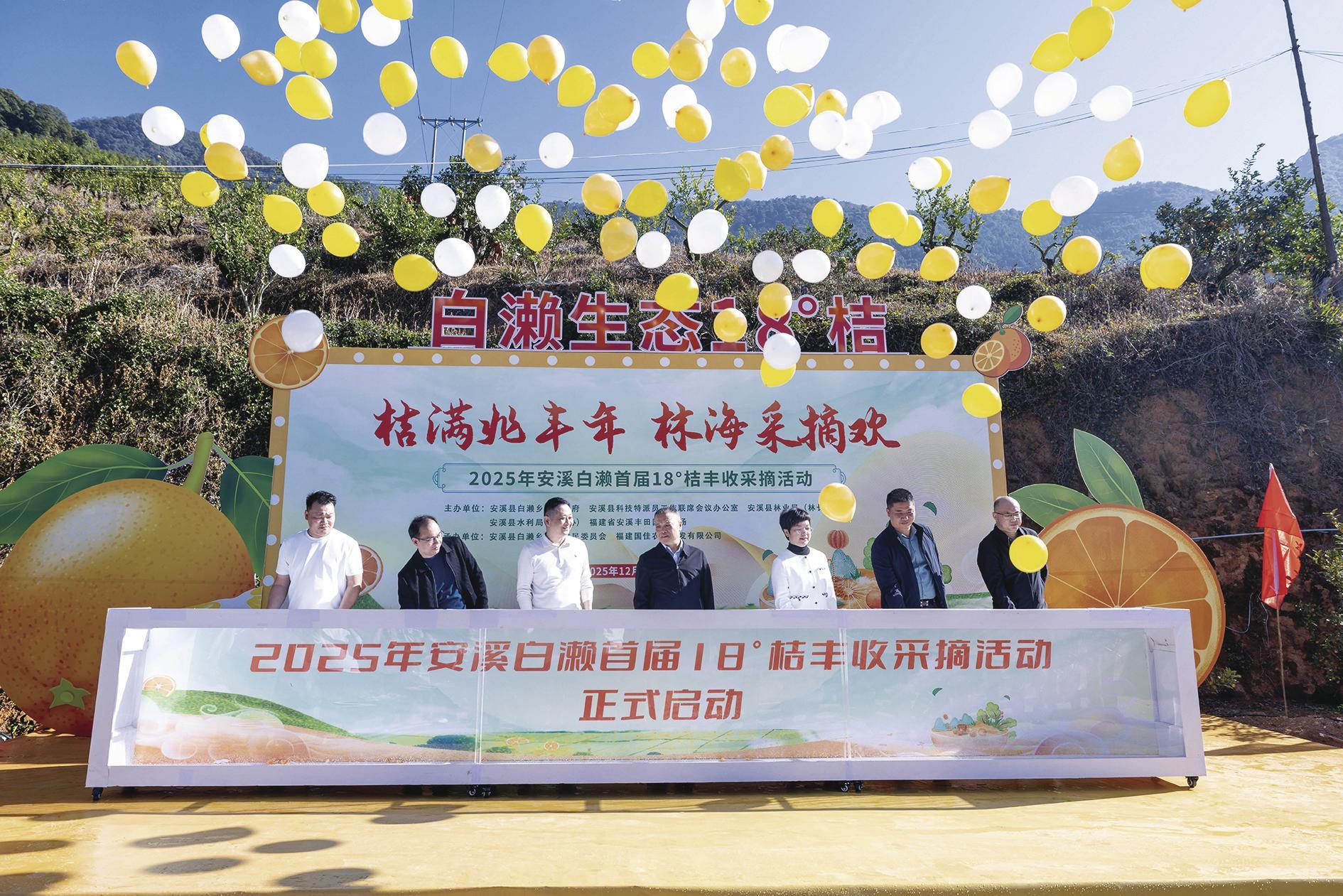 “首届18°桔丰收采摘节,既是特色农产品的一次集中展示,更是白濑乡推动农旅融合、赋能乡村振兴的生动实践。”白濑乡党委书记白泽峰表示,下一步将以品牌建设为抓手,持续优化产业布局,拓展深加工链条,让“18°桔”这样的“黄金果”走出深山、走向全国,真正实现“种一棵果树、富一方百姓”,绘就生态美、产业兴、百姓富的乡村振兴新画卷。