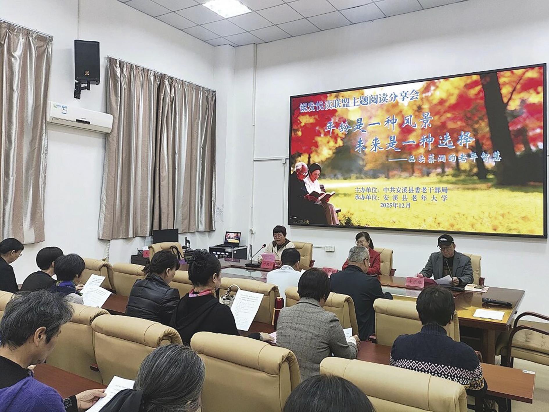 本报讯 (融媒体记者陈颖)近日,县委老干部局、县老年大学在县离退休干部活动中心联合举办“年龄是一种风景,未来是一种选择“主题阅读分享会。银发读者们齐聚一堂,共同品读书籍,用阅读诠释“活到老,学到老”的精神。