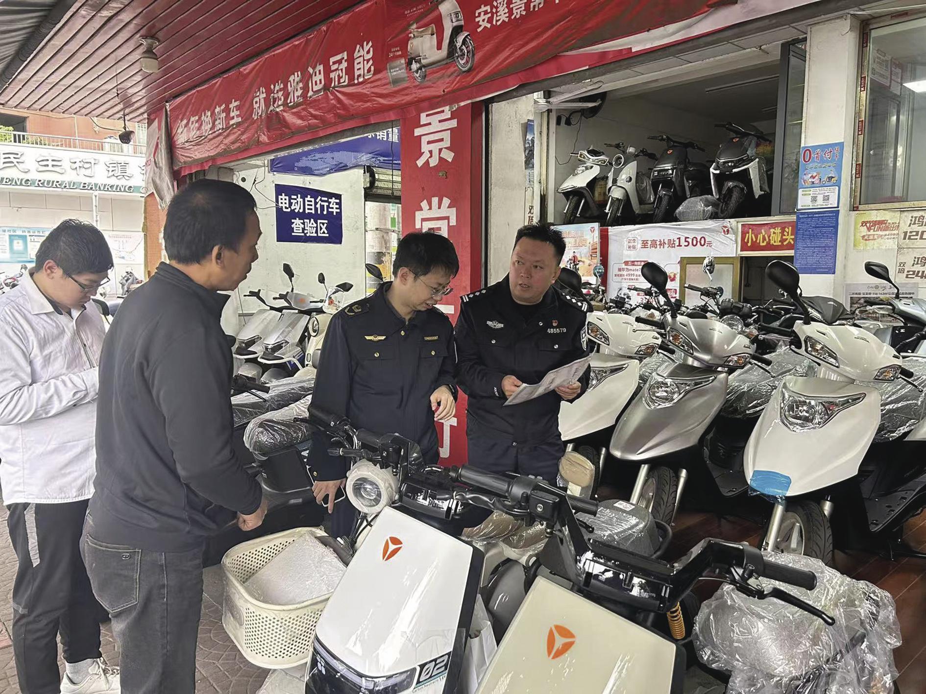 本报讯 (融媒体记者章桂林 通讯员刘顺忠)日前,县公安局交通管理大队车辆与驾驶人管理中队联合县市场监督管理局,深入辖区电动自行车销售店开展新国标宣传活动,规范电动自行车市场秩序。