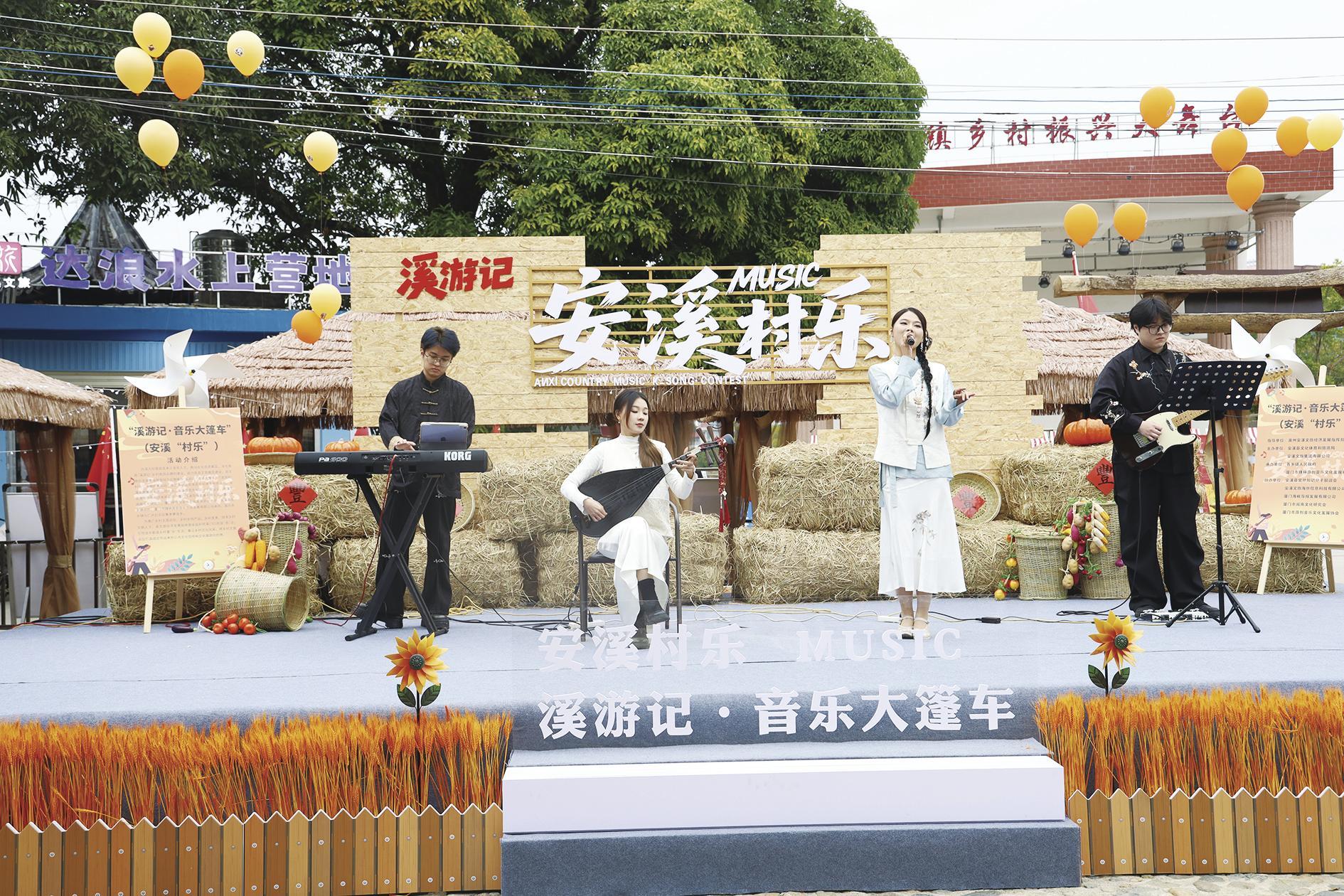 更大的舞台,搭在了乡野田间。“没想到我采茶时哼的山歌能登上大舞台!”尚卿镇藤铁匠人老廖在“溪游记·音乐大篷车”海选现场激动地说。这场贯穿整个季度的赛事以移动舞台串联湖头、尚卿、龙门、西坪等乡镇,让音乐走进田间地头,既歌颂村民的喜乐生活,又展示乡村的文化风采;既推广农特产品与乡村美食,又培育本土文旅人才。尤为值得一提的是,舞台旁的“流动音乐墟市”通过直播带货,让安溪铁观音、山茶油等特产随着旋律“云销四方”。现场吸引300人参与、三个直播间共5万多人线上互动,话题#安溪村乐 传播量超3757万,生动实践了“文旅搭台、经济唱戏”,将文化IP转化为经济发展新动能。