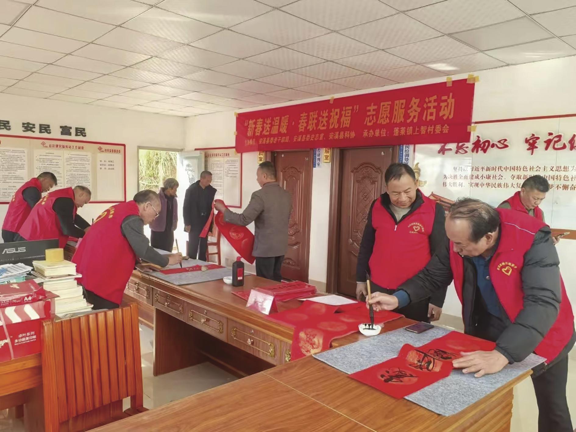 本报讯 (融媒体记者章梅霞)近日,县委老干部局联合县委史志室、县科协,在蓬莱镇上智村开展“新春送温暖·春联送祝福”志愿服务活动,传承闽南春节文化习俗,营造欢乐喜庆、文明祥和节日氛围。