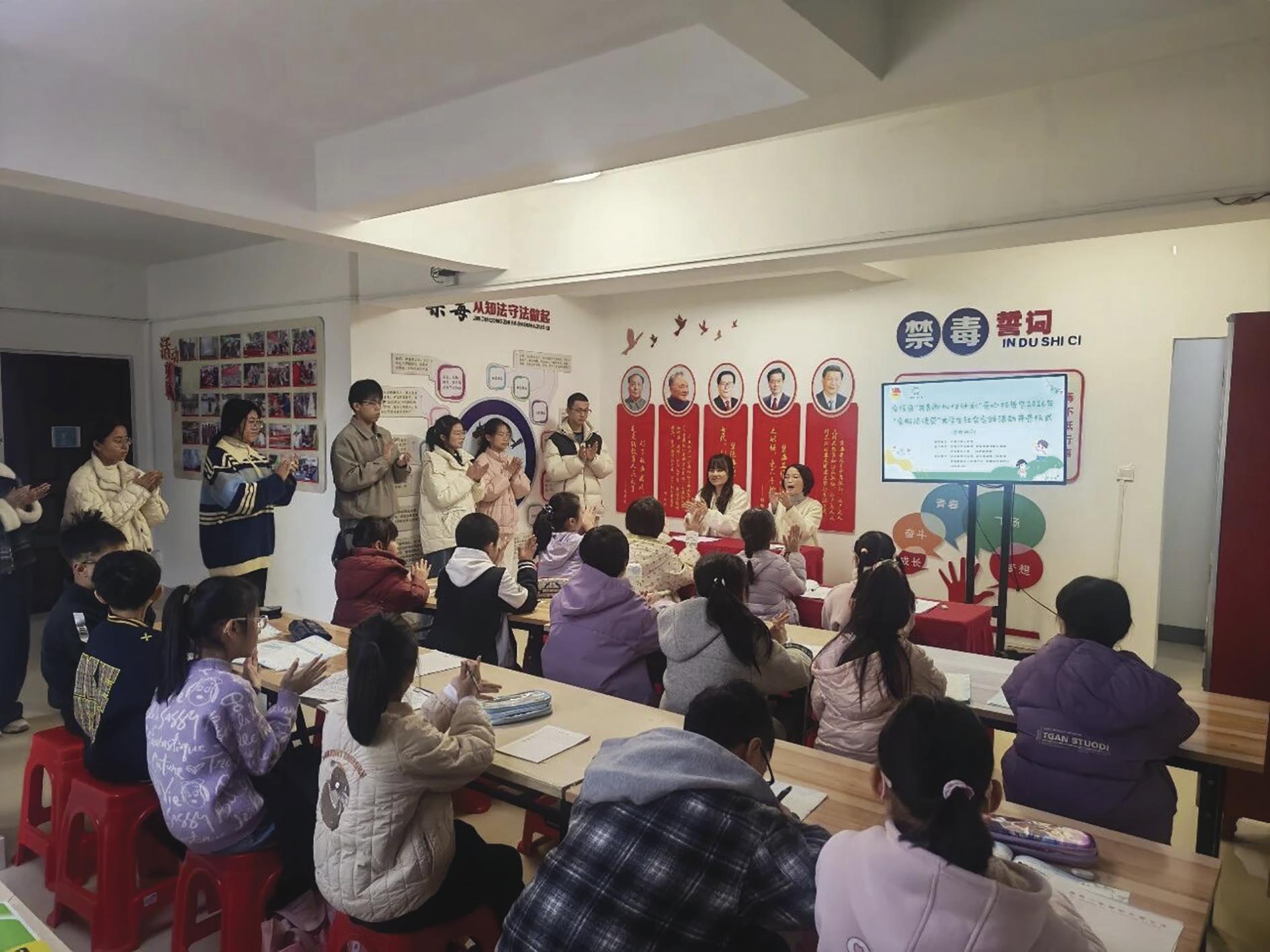 县“共青团·伙伴计划”爱心托管暨2026年“寒假陪读营”大学生社会实践活动在凤城镇登科社区正式开营