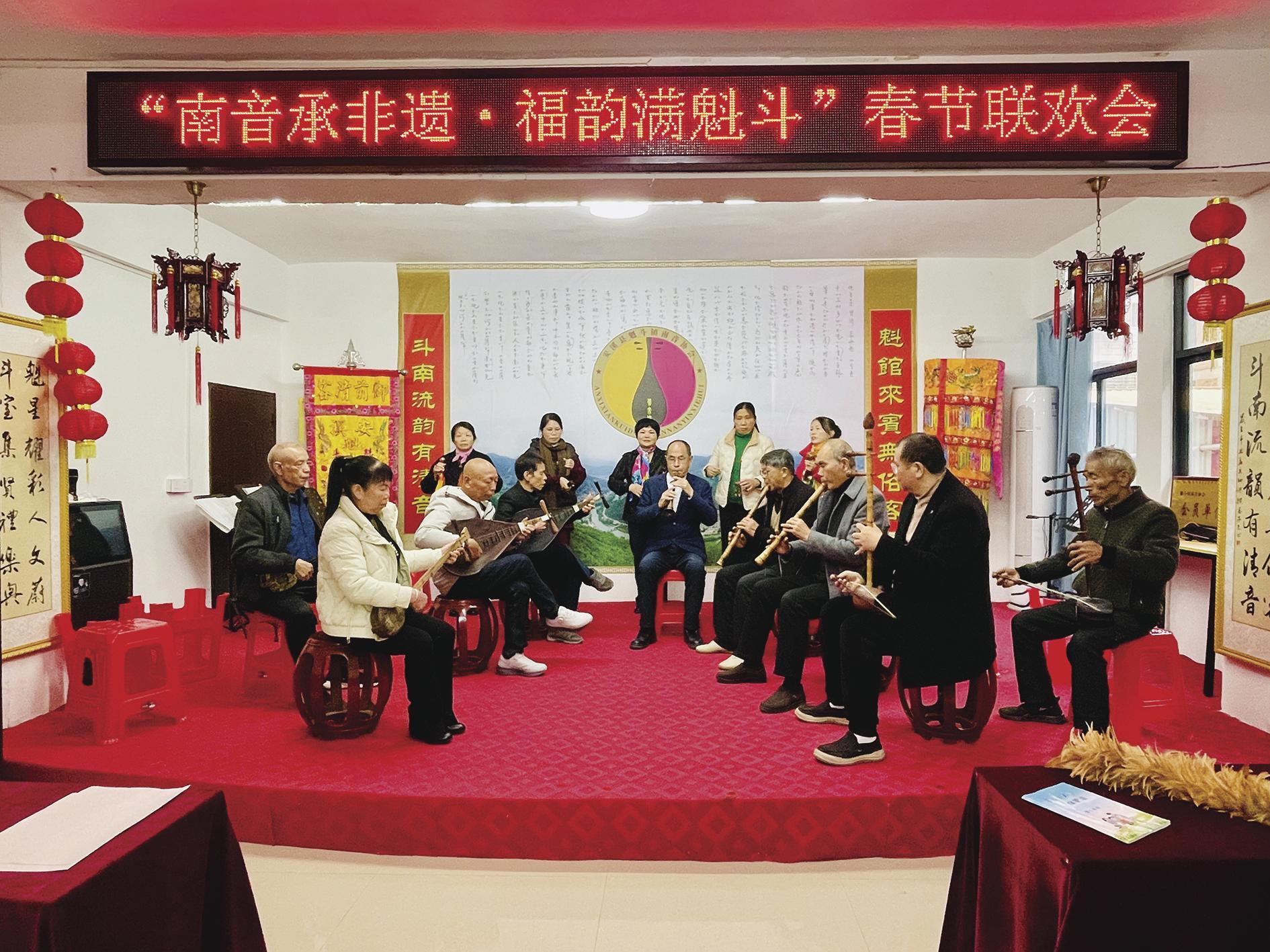 本报讯 (融媒体记者章桂林 通讯员陈良国)近日,魁斗镇新时代文明实践所组织开展以“南音承非遗·福韵满魁斗”为主题的南音展演活动,进一步厚植中华优秀传统文化根基,丰富群众精神文化生活。
