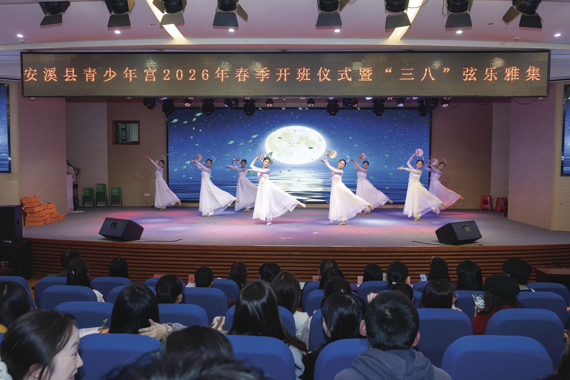 本报讯 (融媒体记者黄东华)三月春风拂茶乡,弦音袅袅启新章。8日,安溪县青少年宫2026年春季开班仪式暨"三八"弦乐雅集在青少年宫400人厅举行,以弦乐为媒庆祝第116个"三八"国际劳动妇女节,共同开启春季学期美育新征程。