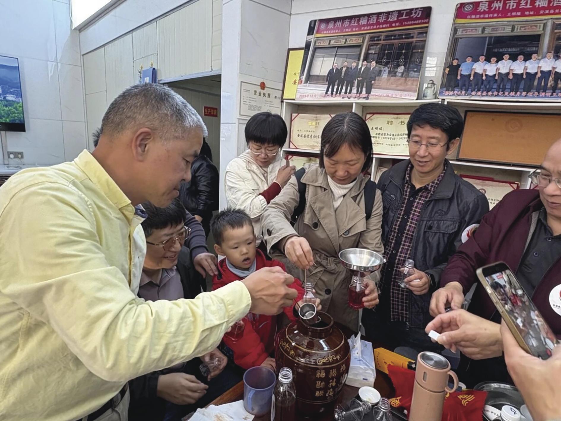 本报讯 (融媒体记者章艺涵)日前,在龙涓镇钱塘村红粬酒非遗技艺传习所,30余名来自教育、医疗等领域的高层次人才集聚一堂,通过参观红粬酒非遗工艺生产线、参与酿制红粬酒、参加红粬酒传承与发展座谈会等方式,全流程了解红粬酒古法与现代相结合的精湛技艺,沉浸式体验非遗文化的魅力。