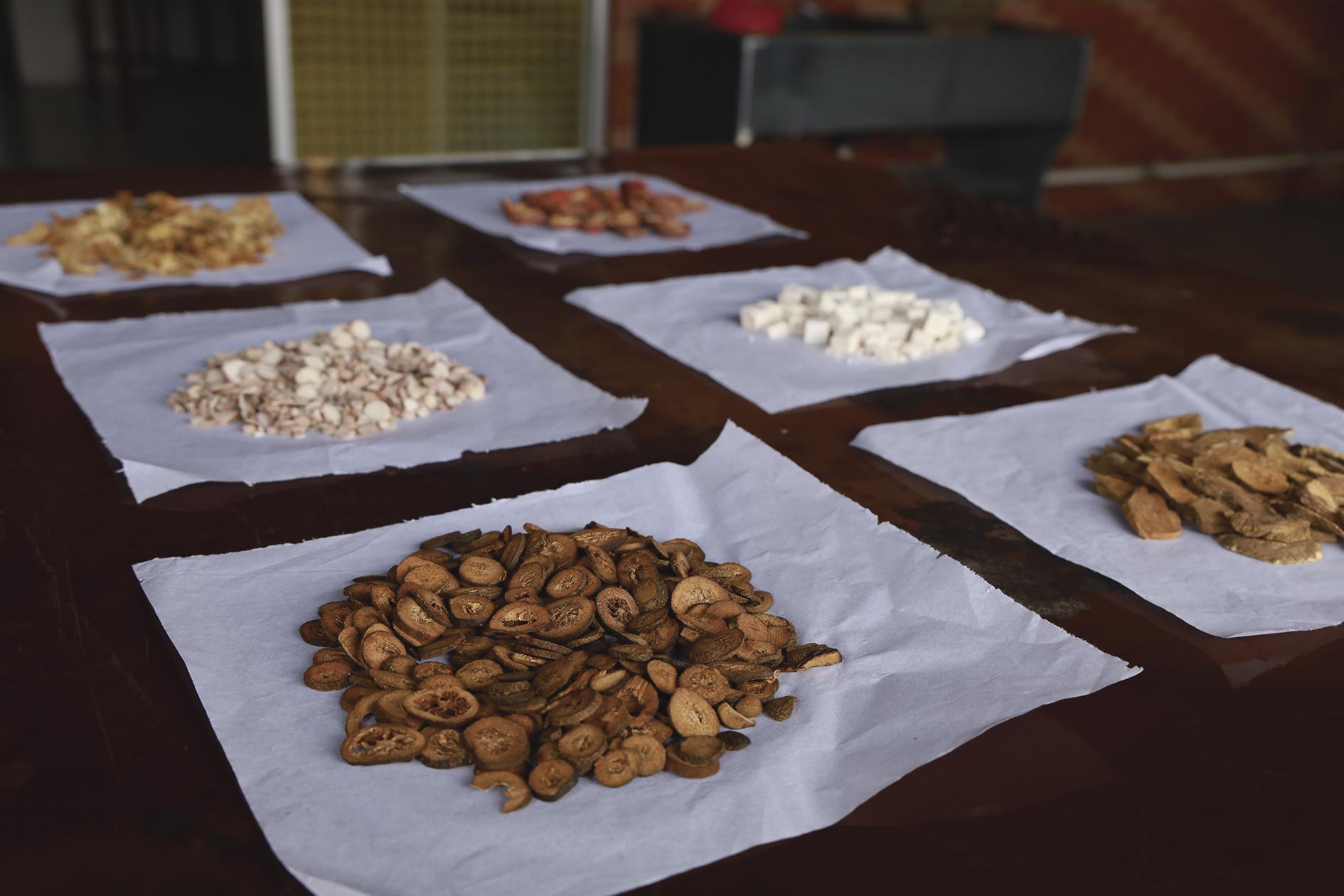 从选材、晾晒、炒制、配伍,到二次晾晒、研磨、搅拌、包装……每一份老其苏枳术末的诞生,都需要经历多道工序,而每道工序皆颇有讲究。尤其在选材上,枳实必须选用江西所产、果皮青黑且果肉厚实的成熟果实,白术则优选浙江生长三年以上、根茎粗壮且无霉变的优质材料。