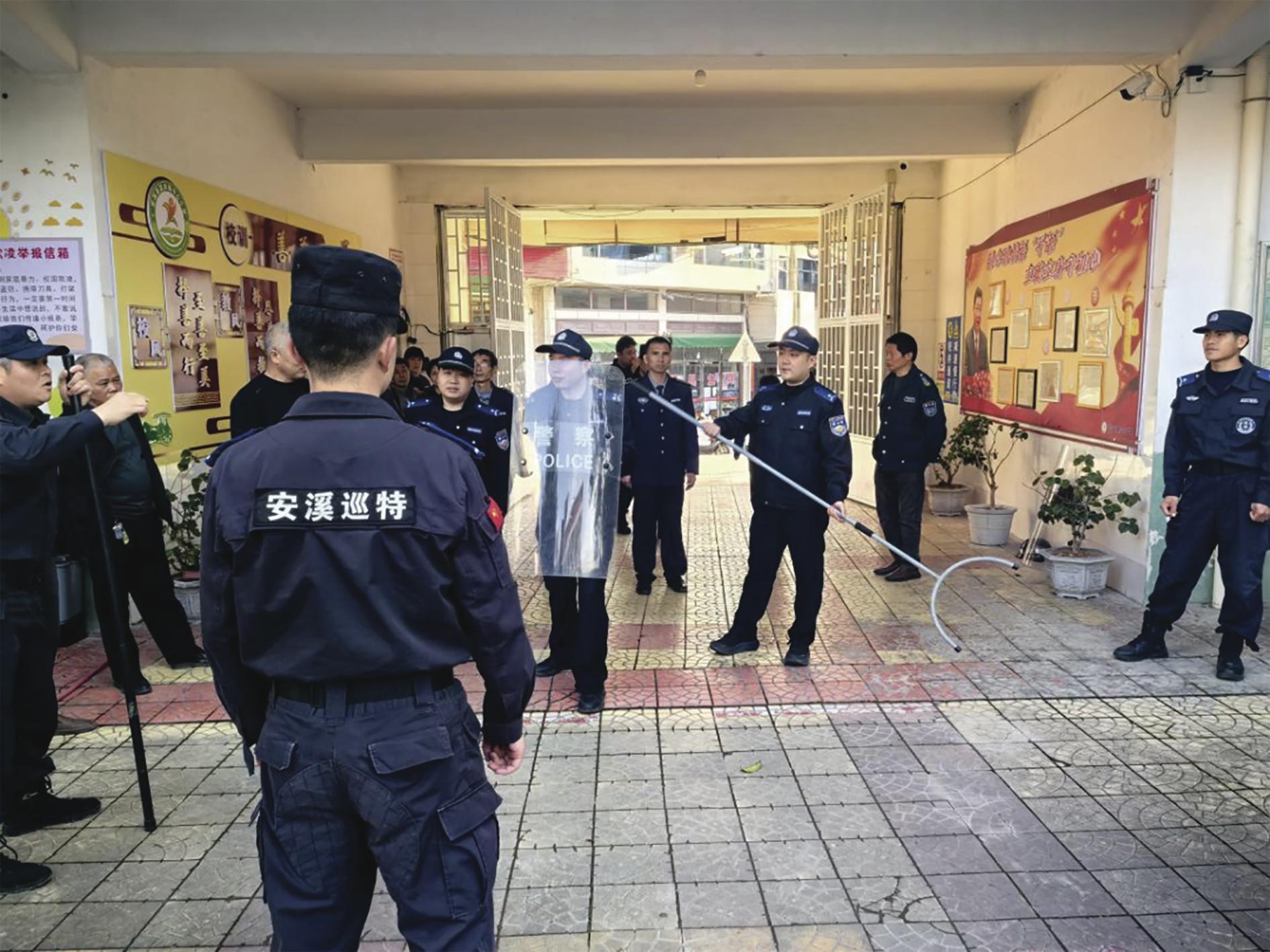 蓝田镇综治中心组织开展以“盾棍叉警务实用技能”为核心的应急演练